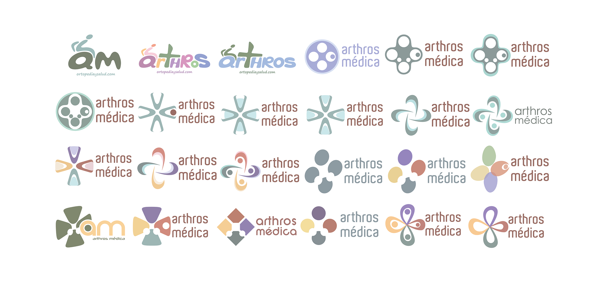 Furthermore, to achieve perfect harmony in the logo, complementary colours such as blue and orange have been combined, lending brilliance and modernity to its form. For the heading “Arthros Médica”, the typeface Abeatbykai has been used which, once refined, blends naturally with the initials “am” in the design.